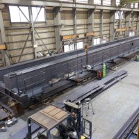 さて写真にあるのは、屋外によく設置してある「橋形クレーン」の走行部で、車輪が組み込まれている「サドル」というユニットです。(長さ9m)