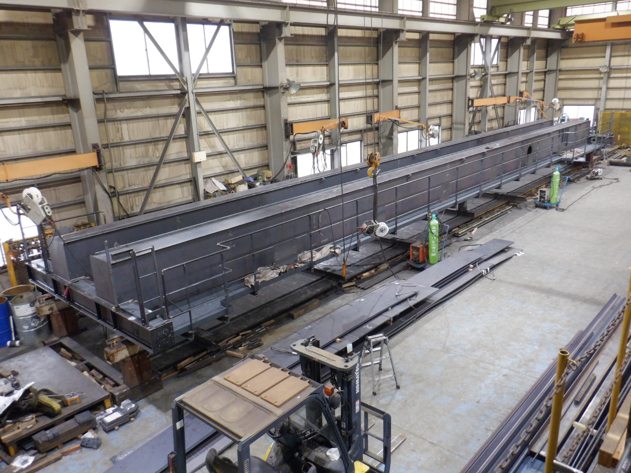 色々な製缶物を製作していますが、特にメインとなる「天井クレーン」に関しては、全長が長くなる傾向です。
